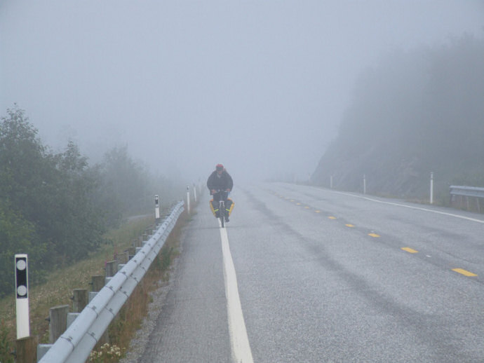 Rowerzysta we mgle