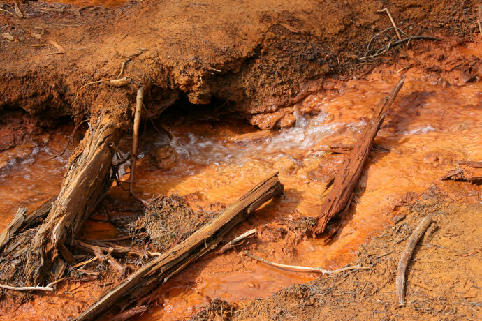 Woda jest czysta, dno jest czerwone. Kootenay National Park.