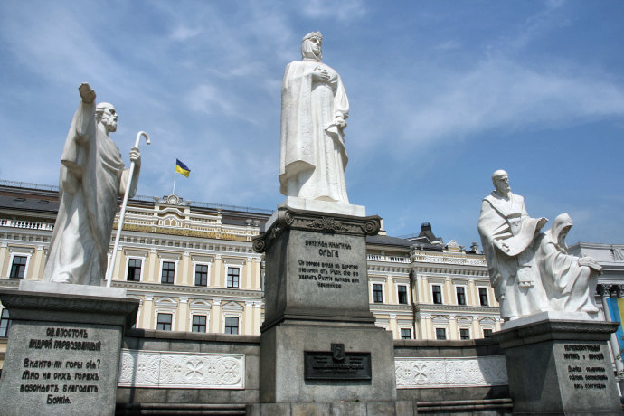 Od lewej: święty Andrzej, księżna Olga, święci Cyryl i Metody