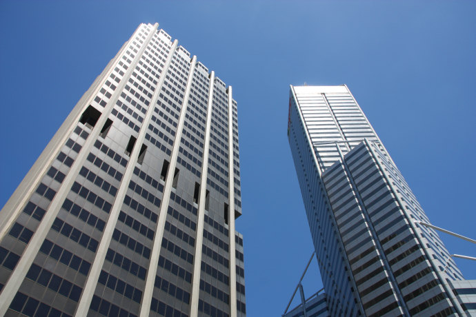 Najwyższy budynek w Perth - St. George's Terrace. Oczywiście to ten niższy, po prawej.