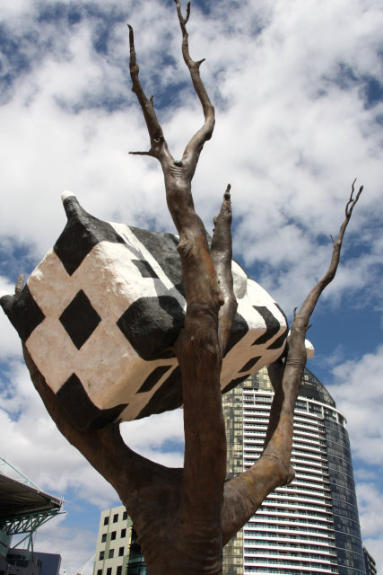 Prostopadłościenna krowa na drzewie. Sztuka nowoczesna. Jeśli jej nie rozumiecie, podpowiem wam, że jest głęboka.