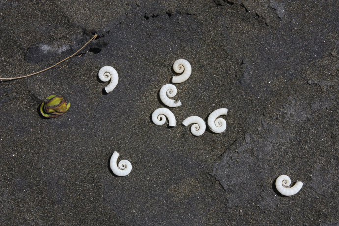 Muszelki na czarnej plaży