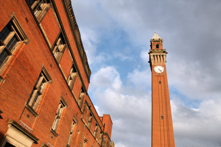 Uniwersytet Birmingham - wieża znana jako Old Joe wzorowana na Torre del Mangia w Sienie. Wieża ma 99-110m. Uniwersytet w różnych miejscach podaje obie wysokości. Chyba podaruję im barometr i ten link: http://42.pl/u/2bHC