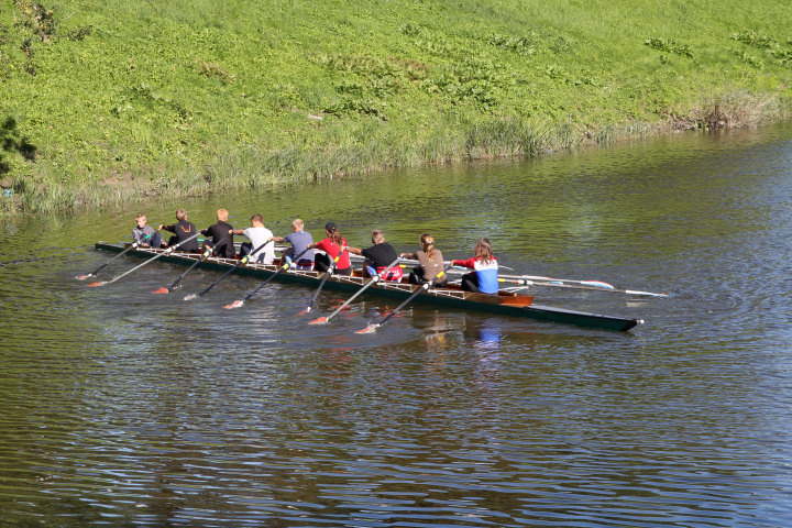 Trenujący młodzi kajakarze