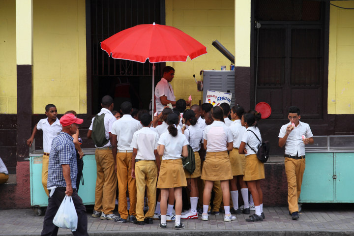 Młodzież szkolna pcha się po lody włoskie w cenie 1 peso (0,14zł)