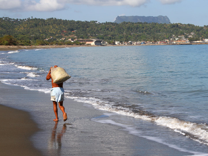 Człowiek niesie wór. W tle El Yunque.