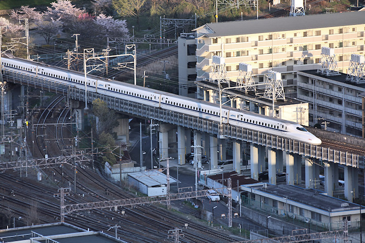 Widok z Kyoto Tower na pociÄ…g Shinkansen
