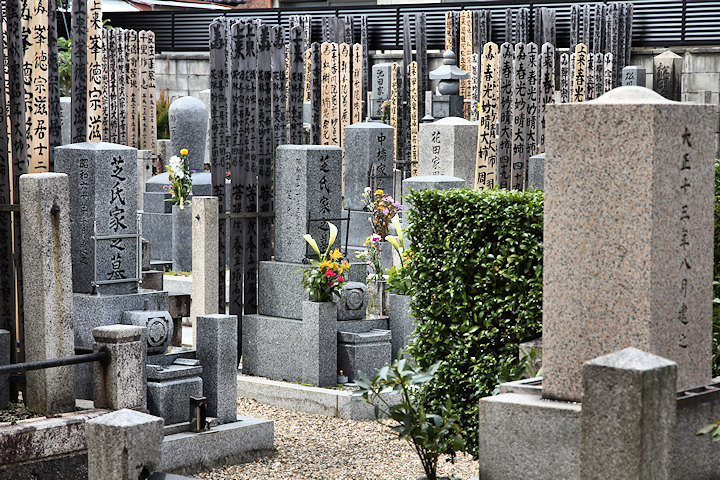Świątynia Daitokuji - typowy japoński cmentarz. Drewniane tabliczki/deski przy nagrobku to sotoba. Na nich napisane są nowe, pośmiertne imiona pochowanych osób.