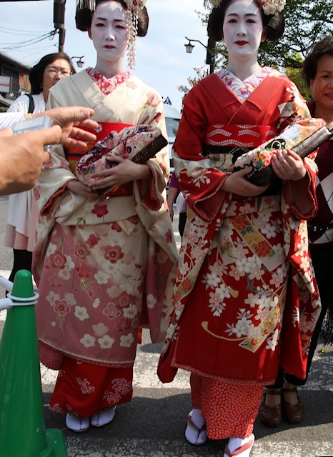 Autentyczne gejsze zaskoczyły mnie na ulicy, zdążyłem zrobić tylko "czajańskie zdjęcie z nadgarstka" ;-)