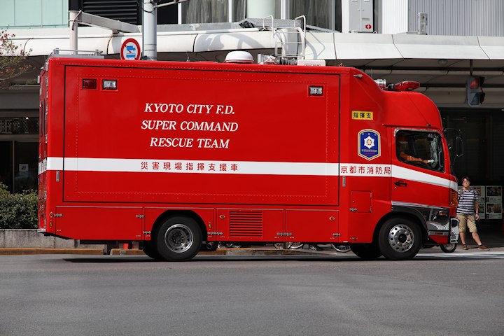 Przyznajcie, że nie ma miasta, które by miało bardziej czaderską nazwę wozu strażackiego: Kyoto City Fire Department Super Command Rescue Team :-)
