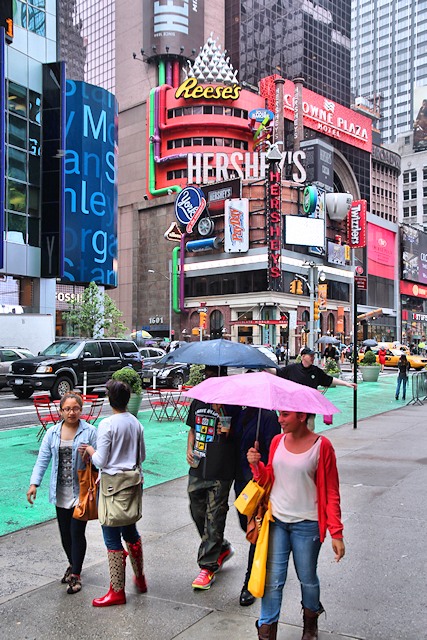 W tle słynna reklama producenta czekolady Hershey's. Times Square.