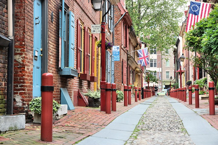 Elfreth's Alley uważana za najstarszą ulicę z domami mieszkalnymi w USA.