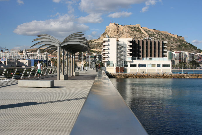 Stalowe palmy, w tle Zamek Świętej Barbary