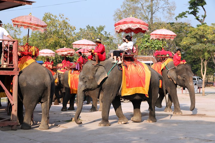 Przejażdżka słoniem. W roku 1850 w Tajlandii było 100.000 udomowionych słoni. Obecnie około 2.700.