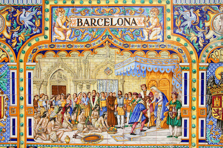 "Strefa Barcelony" wśród ceramicznych dekoracji na Plaza de Espana